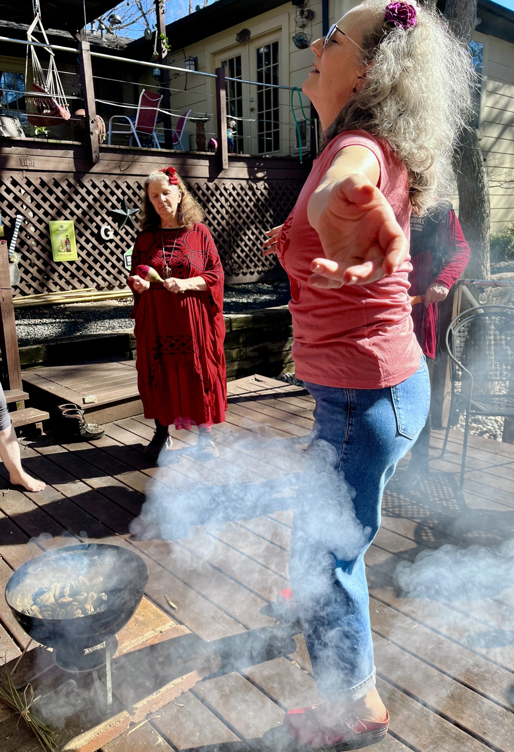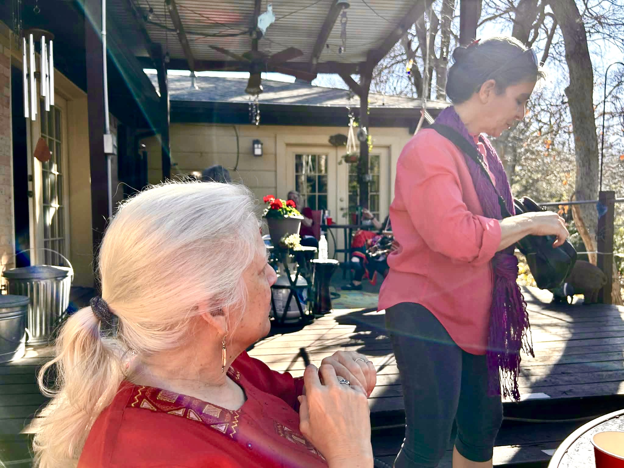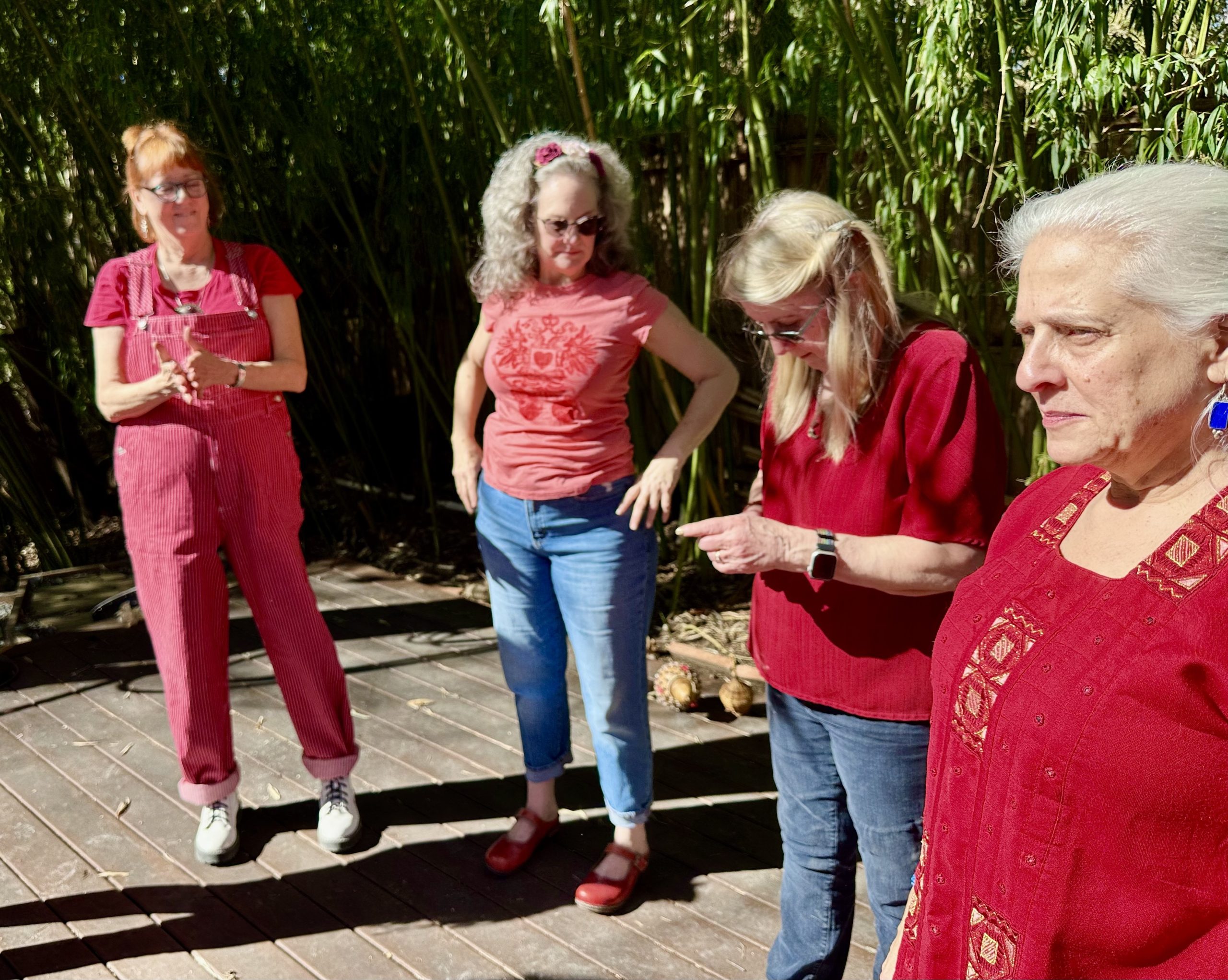 Susannah Garza’s house was a perfect locale for the Women’s Red New Moon. The backyard had multi levels, which was great for socializing. The red food was marvelous and everyone looked radiant in red. Thanks to all who attended and apologies for the late notice.